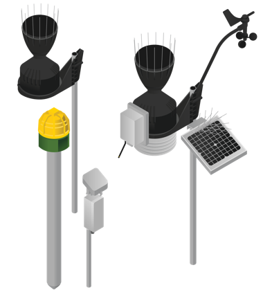 - Cellular/Wired SDl12, Rain Bucket, Temp/Humidity Stack, Anemometer Arm/Cups, Wind Direction Vane, Solar Panel, 6' Mounting Post, Environmental Insights, Alerts, Sharing Ability, API Integration, and Customer Insights
