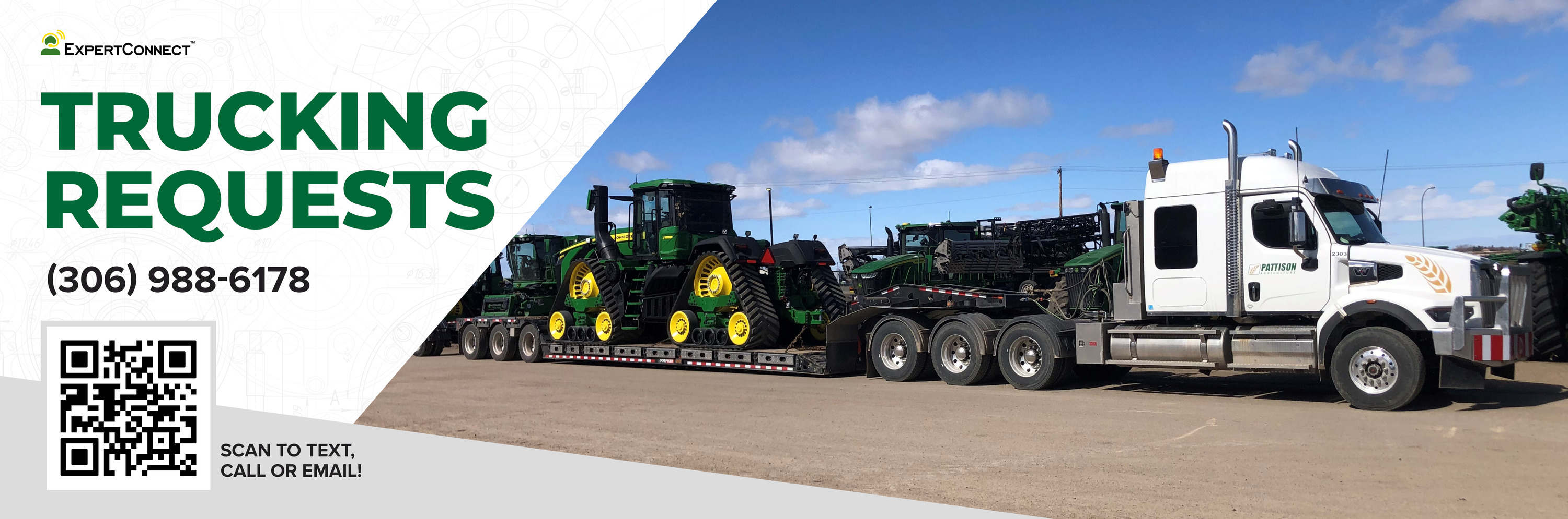Trucking Manager "Pattison Ag has invested in the proper equipment to complete ALL hauling needs safely and compliant with all regulations. We're equipped to haul a variety of equipment for new & current customers, and contractors."
