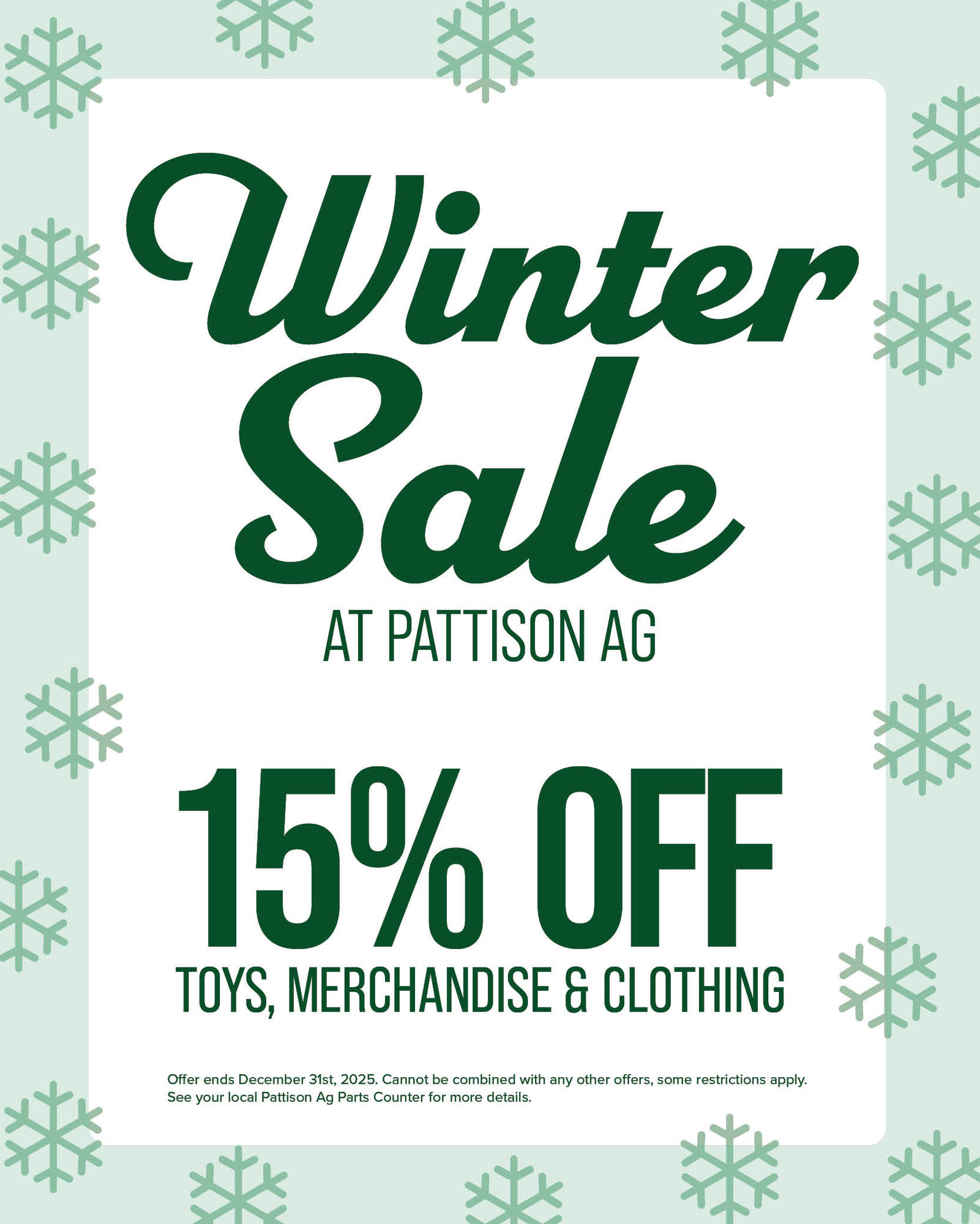 Winter Sale at Pattison Ag! 15% Off Toys, Merchandise, & Clothing! Offer Ends December 31, 2025