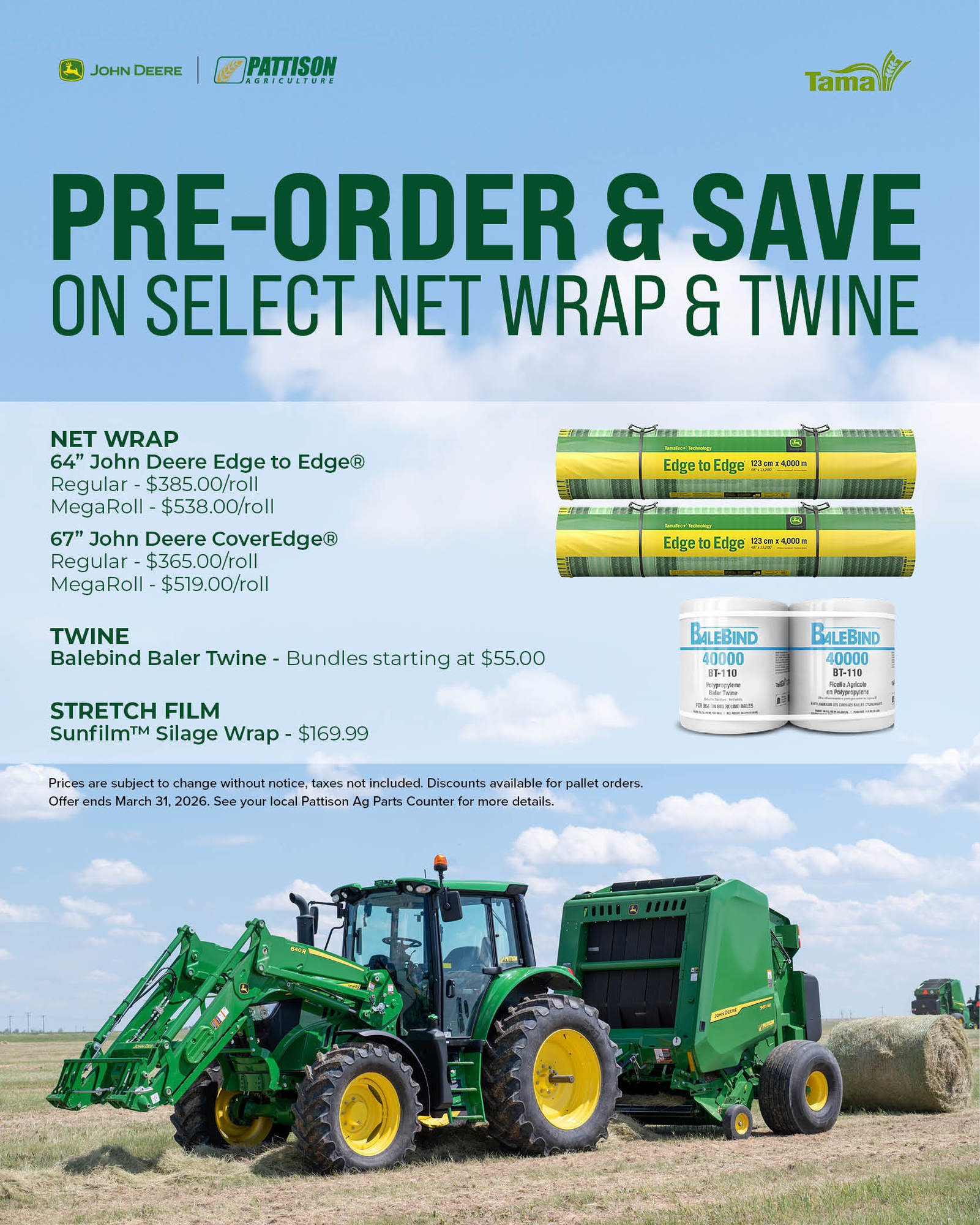 Pre-Order & Save on Select Net Wrap & Twine! Offer Ends March 31, 2026