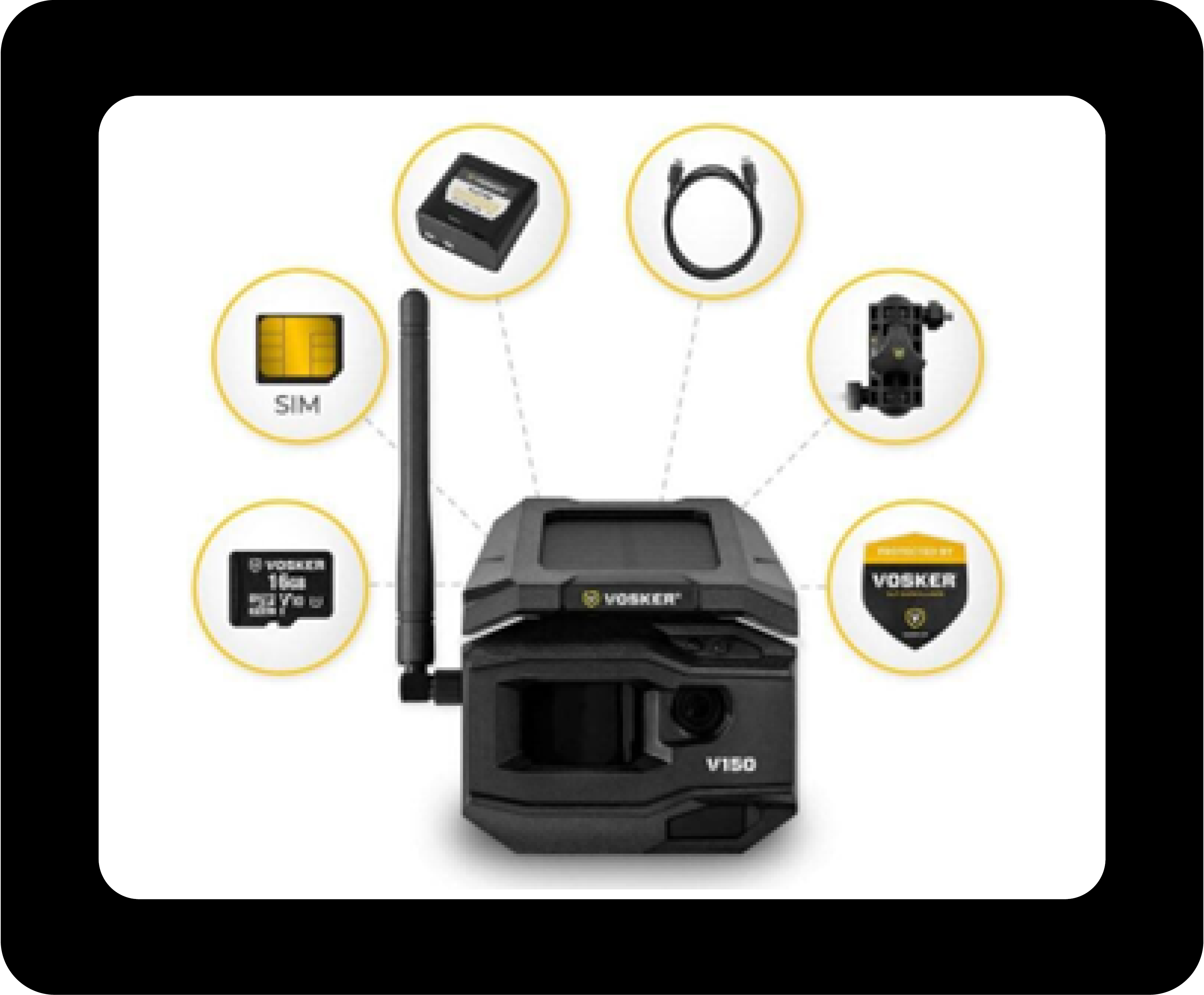 Live Audio-Video Streaming, VOSKER SIM Card included, VOSKER Data Plan REquired, 100ft Motion Detection, 90-degree Ultra-Wide ANgle View, Mobile Alerts too your phone, Night Vision up to 100ft, and Local Backup on microSD4G-LTE Cellular connectivity, not compatible with Wi-Fi